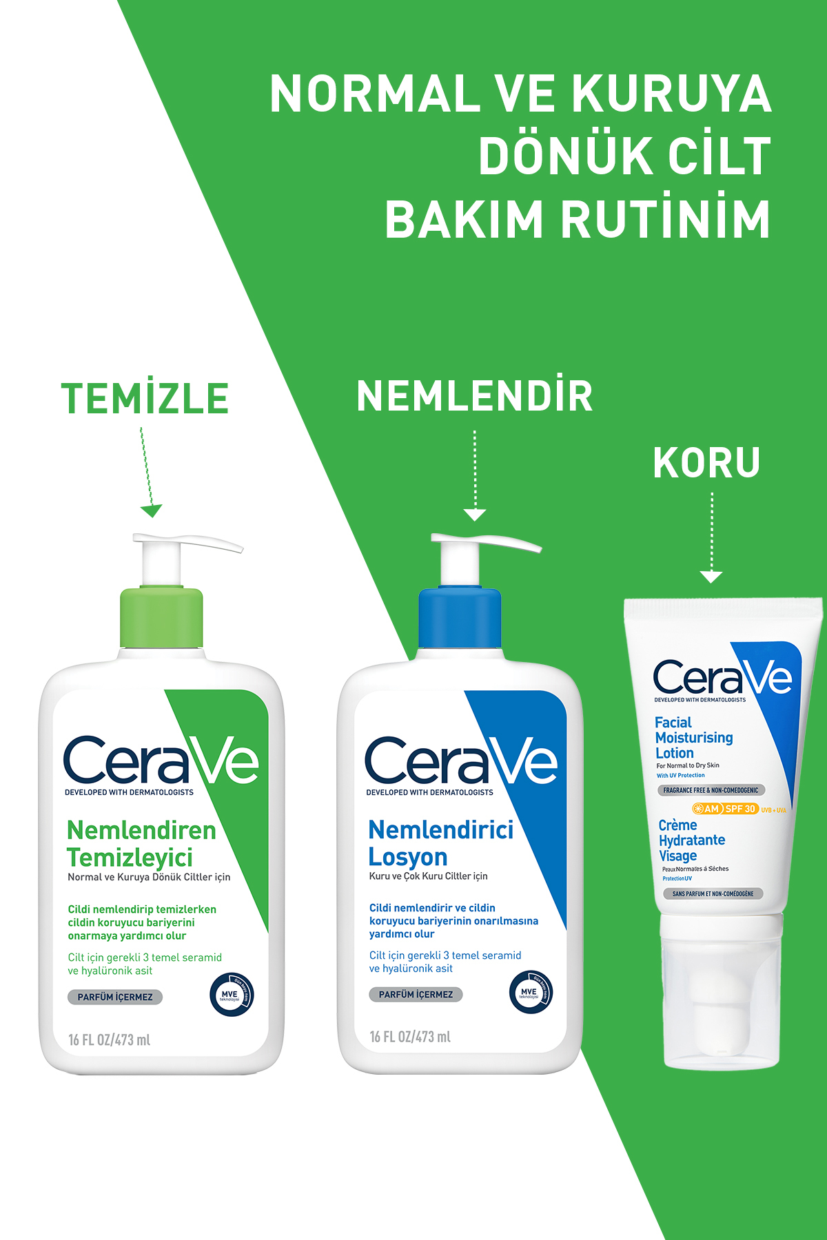 CeraVe Normal Ve Kuru Ciltler İçin Nemlendiren Temizleyici 473ml;Tüm ürünlerimiz 0 orjinaldir.;Ürünlerimiz Distribütör firmalardan temin edilmektedir.;Sektörde 22 yıllık tecrübemizle, Saklama Koşullarına uygun şekilde depolarımızda muhafaza ettiğimiz ürünleri sizlere göndermekteyiz.;Ürün resimlerimiz temsilidir.;Ürün Ambalajı yenilenmiş ise yeni ambalajla gönderilebilir.;Kargolarımız kargo firmasına iletildikten sonra takip numaraları sisteme otomatik olarak düşmektedir.;Size iletilen takip numarası ile kargonuzun takibini yapabilir.;Evde olmayacağınız saatler için kargo firmasıyla iletişime geçebilirsiniz.;Genel uyarı: Sağlık bakanlığına bağlı Türkiye İlaç ve Kurumunun aldığı karar gereği, İnternet üzerinden satışı yapılan ürünlere ilişkin reklam ilan ve açıklamalarda endikasyon belirtilmesi yasaklanmıştır.;İnternet Sitemiz üzerinden satılan ürünlerle ilgili özellikle tedavı edilmesi gereken rahatsızlıkları tedavı ettiği ya da tedavısına yardımcı olduğu ve/veya ilaç niteliğinde olduğu şeklinde beyanlara ve ürün sayfalarında ürün açıklamalarına yer verilmemektedir.;İlginiz ve anlayışınız için teşekkür ederiz.